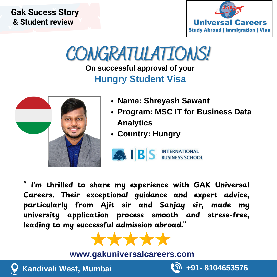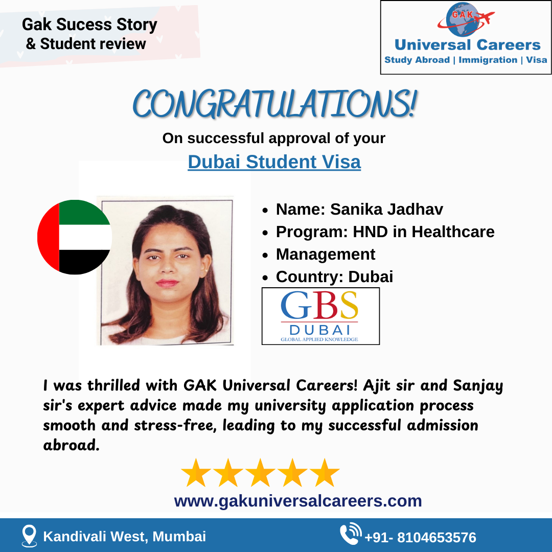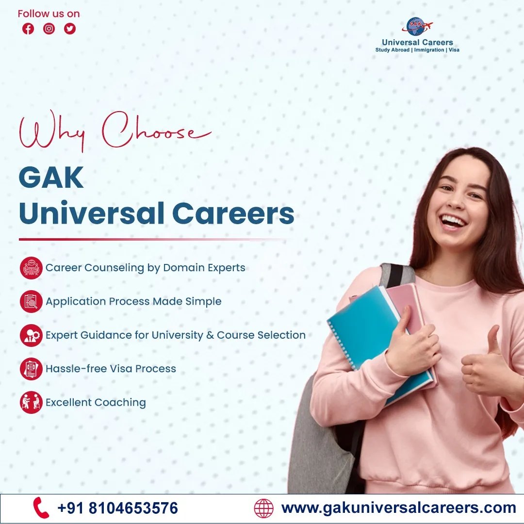 GAK युनिव्हर्सल करिअर सर्व्हिसेस प्रायव्हेट लिमिटेड ची स्थापना 2012 मध्ये मुंबईत परदेशात अभ्यास, परदेशात काम, इमिग्रेशन, व्हिसा आणि कोचिंग सर्व्हिसेससह संपूर्ण भारतापर्यंत पोहोचण्याच्या दृष्टीकोनातून करण्यात आली. हे दोन तरुण आणि गतिमान उद्योजकांचे स्वप्न आहे जे चांगले अनुभवी आणि कमावलेले आहेत. भारताच्या स्टडी अब्रॉड इमिग्रेशन इंडस्ट्रीमधील नावे.