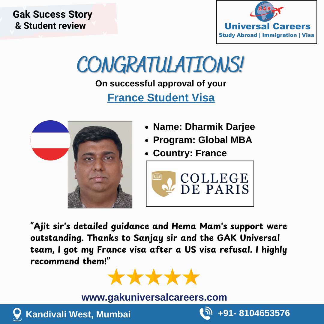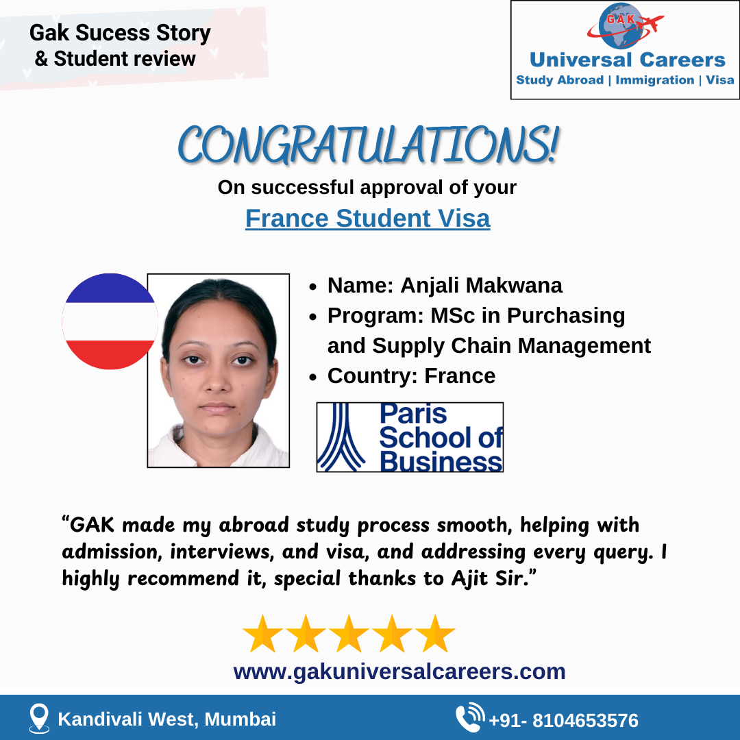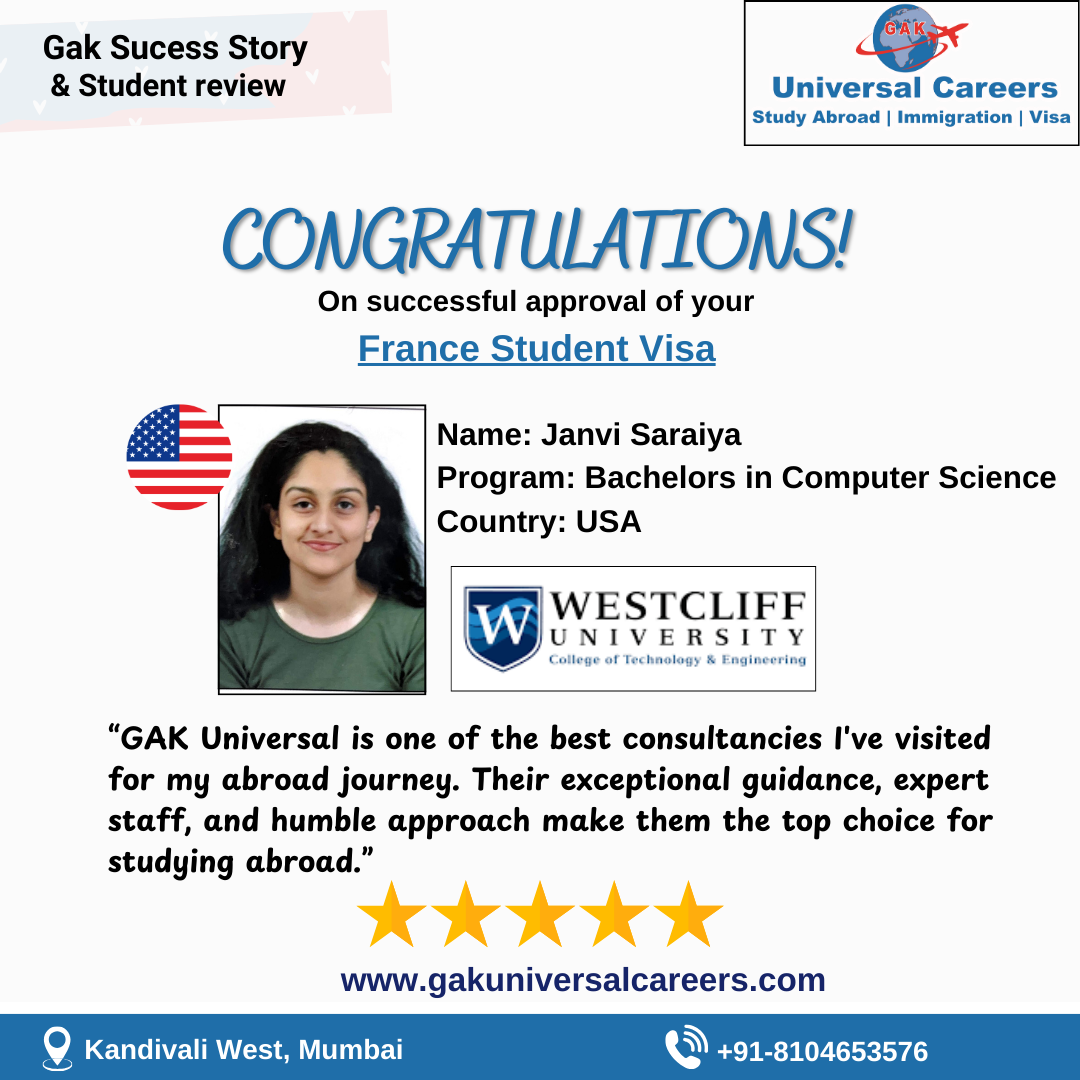 GAK युनिव्हर्सल करिअर सर्व्हिसेस प्रायव्हेट लिमिटेड ची स्थापना 2012 मध्ये मुंबईत परदेशात अभ्यास, परदेशात काम, इमिग्रेशन, व्हिसा आणि कोचिंग सर्व्हिसेससह संपूर्ण भारतापर्यंत पोहोचण्याच्या दृष्टीकोनातून करण्यात आली. हे दोन तरुण आणि गतिमान उद्योजकांचे स्वप्न आहे जे चांगले अनुभवी आणि कमावलेले आहेत. भारताच्या स्टडी अब्रॉड इमिग्रेशन इंडस्ट्रीमधील नावे.